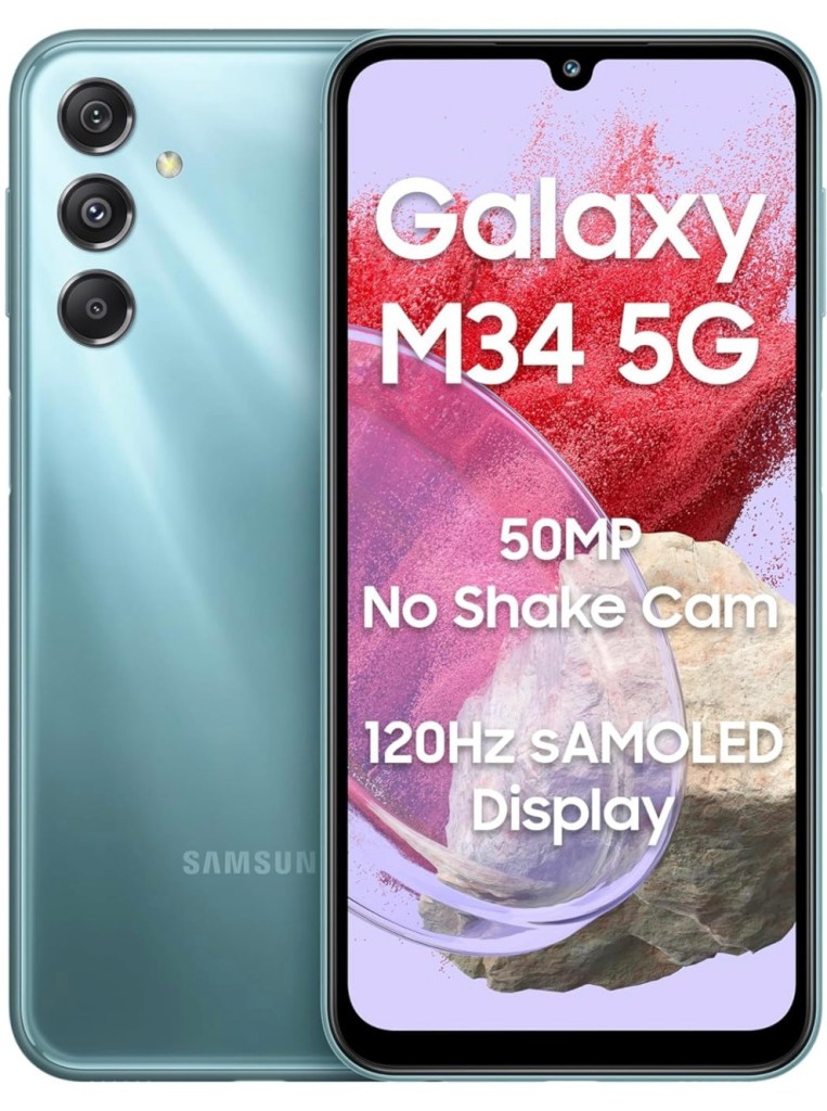 • Samsung Galaxy M34: Triple camera setup with 50MP main, 8MP ultrawide, 2MP depth sensor.